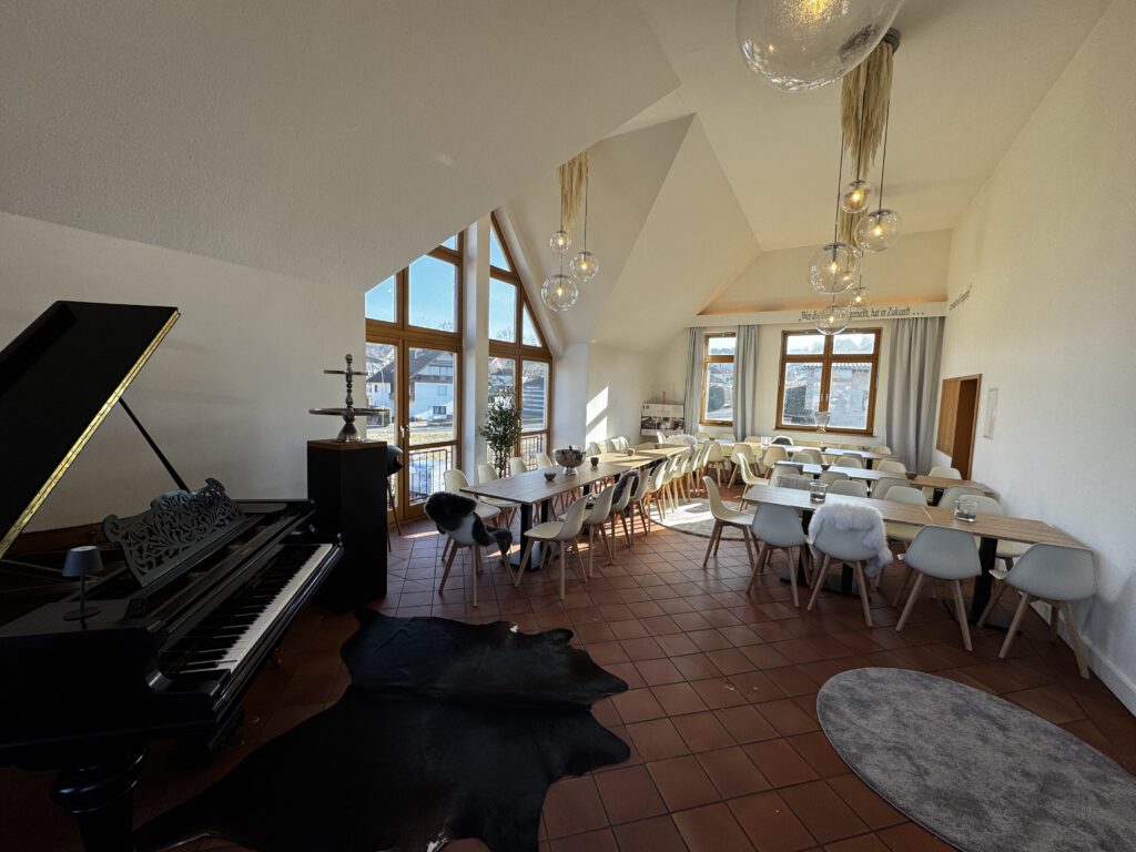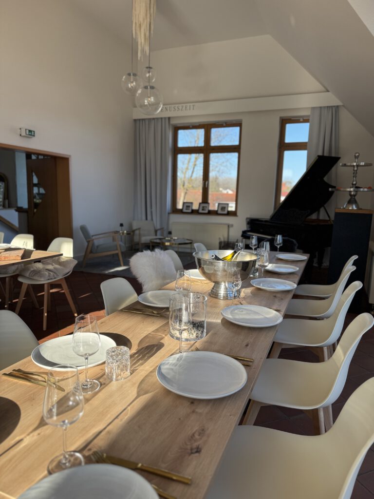 Unsere neue Eventlocation im Schatten der Martinskirche Udenhain bietet vielerlei Möglichkeiten für Eure Veranstaltung. Ein 4m hoher, großer, lichtdurchfluteter Hauptraum mit 50 Sitzplätze im Innenbereich, ein großer Garten (der für Events mit dazu gemietet werden kann), ein großes Foyer für Sektempfänge, Parkplätze auf dem Gelände sowie eine ausgerüstete Küche mit einem separaten Bereich der Kühlmöglichkeiten.