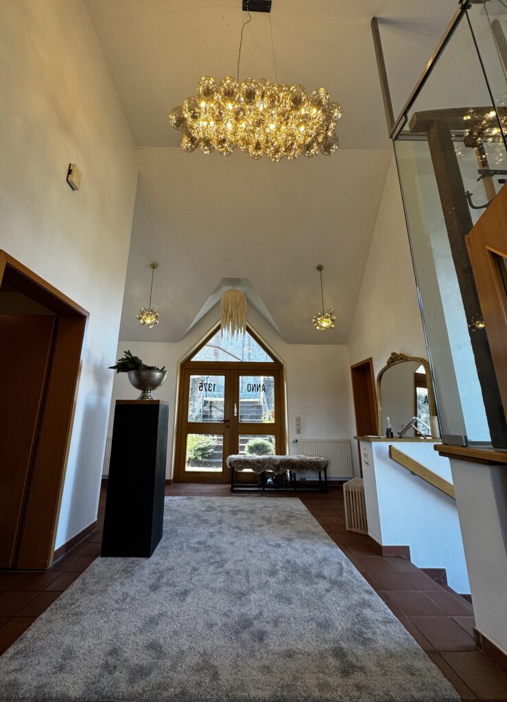 …wurde das restaurierte Urwerk der Martinskirche im Foyer für Euch aufgebahrt. Es weißt darauf hin, wie vergänglich besonders die SCHÖNEN Momente sind. Erstmals 1375 wurde in den Geschichtsbüchern eine Kapelle in Udenhain erwähnt. In den darauffolgenden Jahrhunderten erfolgte der Bau der Wehrkirche die zum Wahrzeichen von Udenhain gehört. In diesem Zuge haben wir uns für den Schriftzug ANNO 1375 an den Flügeltüren des Foyers entschieden.